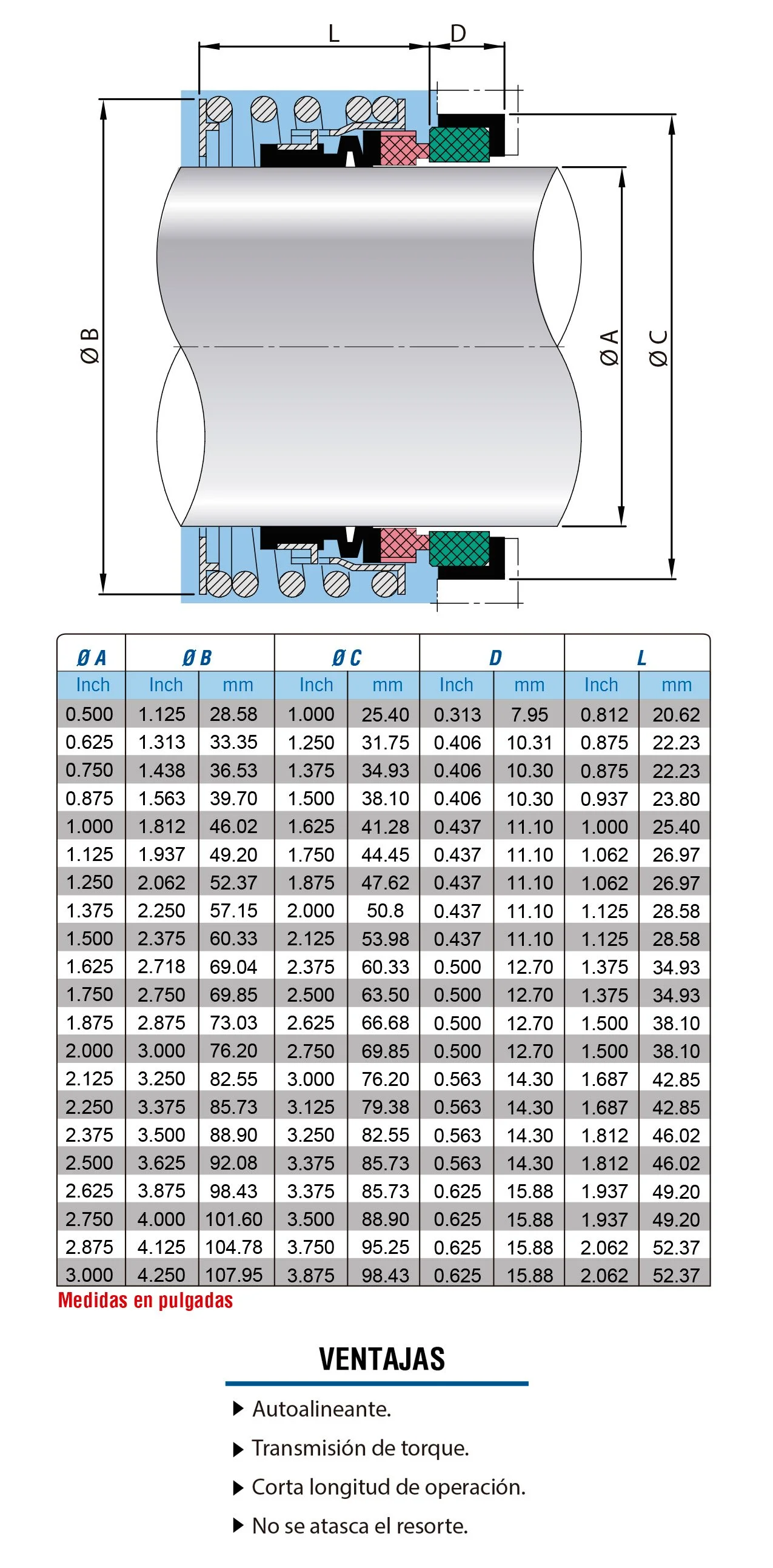 Tiene un alto desempeño, adecuado a un amplio rango de servicio, desde agua-vapor hasta productos químicos y algunos materiales corrosivos.